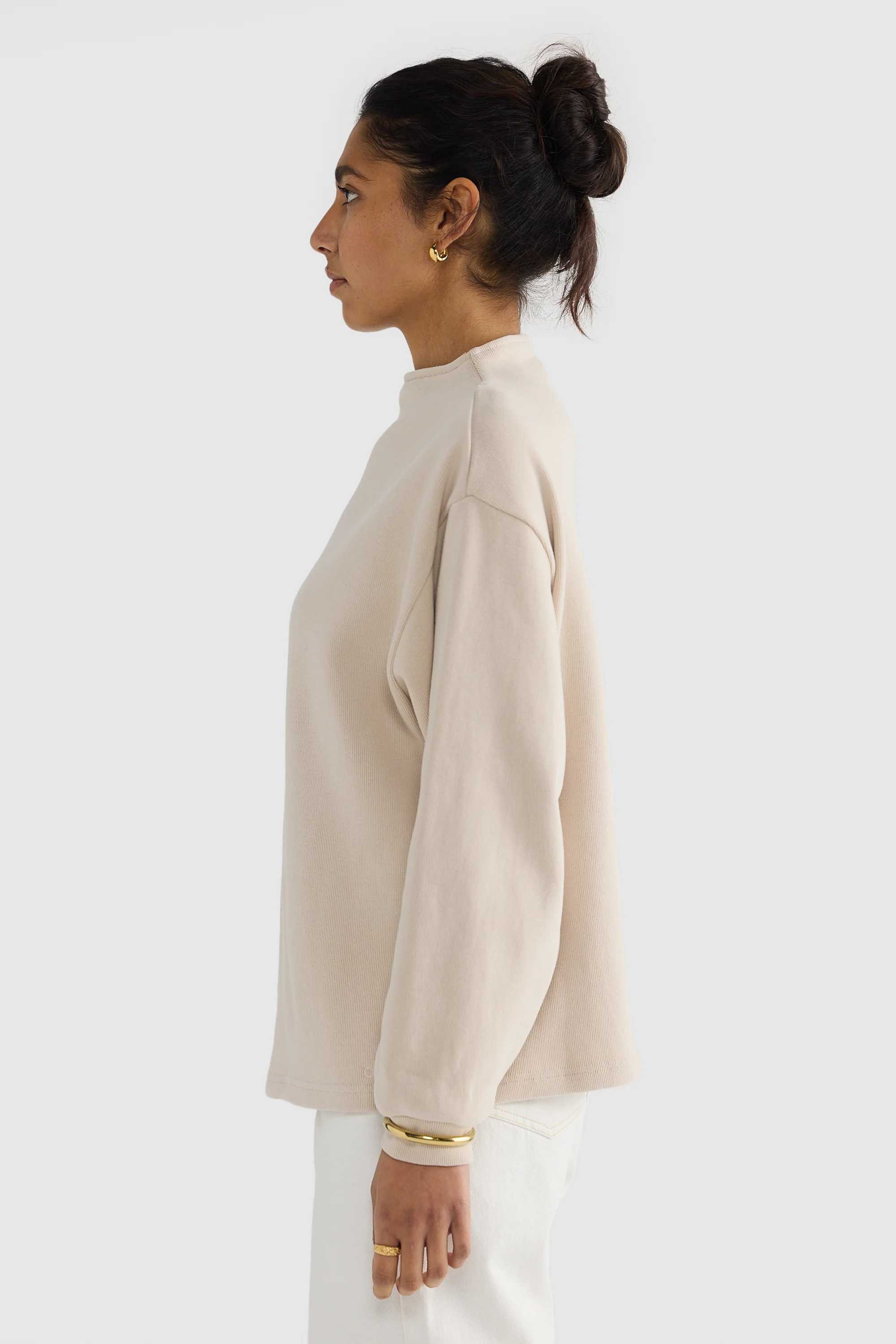The Ava High Neck Ribbed Jumper is a premium grown-on neck sweater designed for comfort. This piece is crafted from high quality brushed cotton making is soft to touch and perfect for all day lounging.