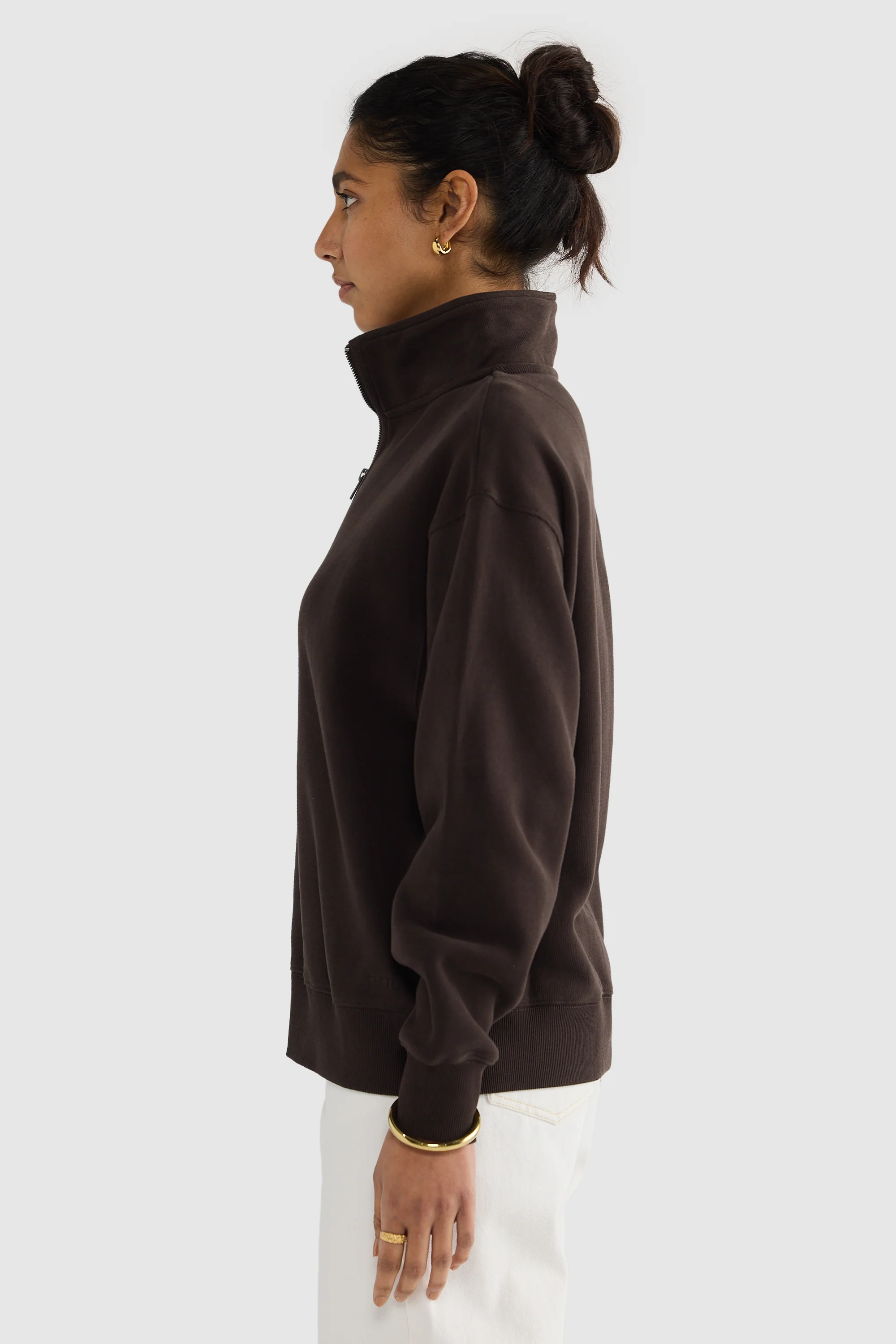 Ava Ribbed Quarter Zip Carob