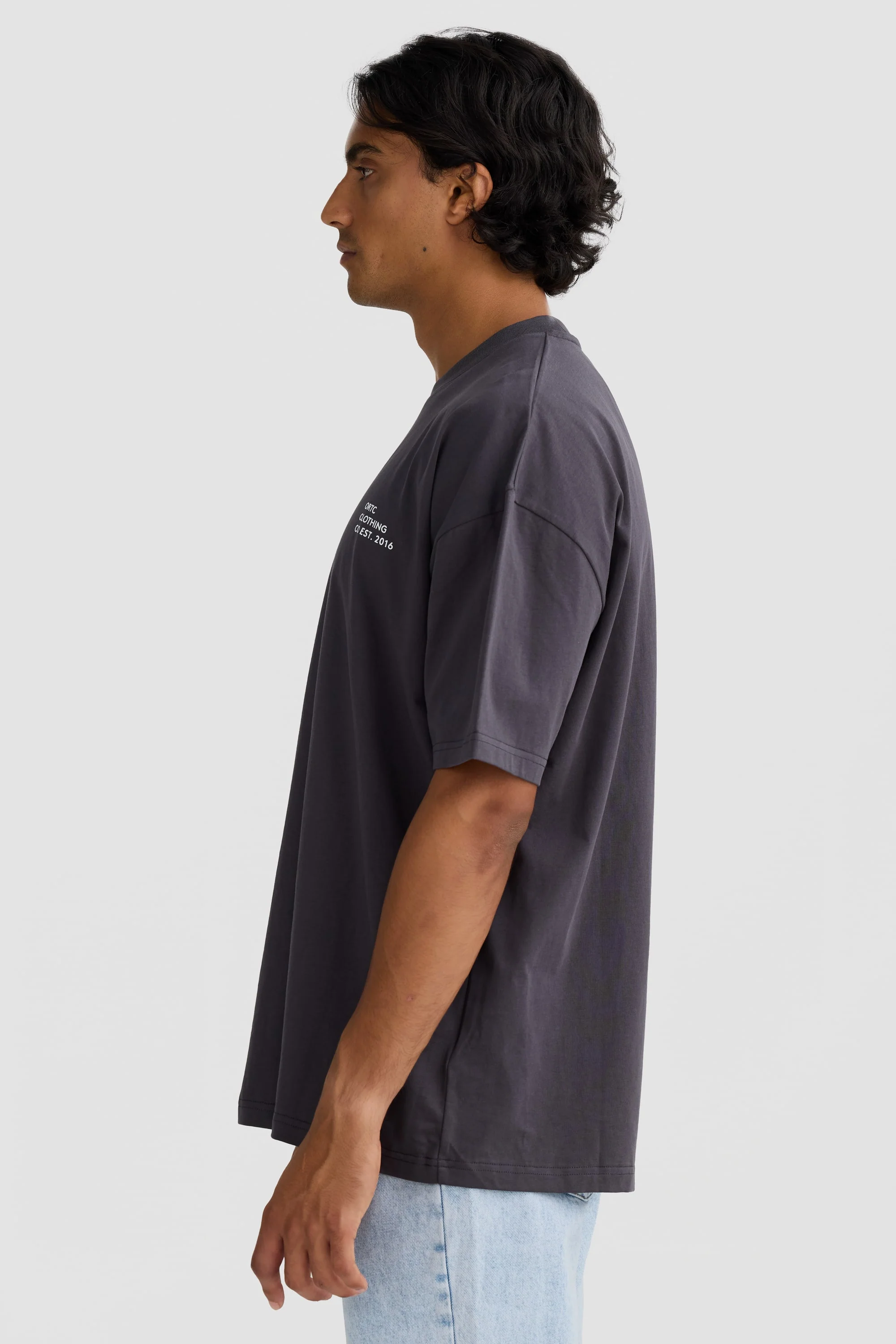 The Box Fit Logo T-Shirt Charcoal is a 90s-inspired oversized fit tee made from 100% heavy weight cotton. Featuring a subtle screen printed ORTC CLOTHING CO logo for a minimal aesthetic, the Box Fit Logo T-Shirt is a style you can wear on repeat, every day of the week.