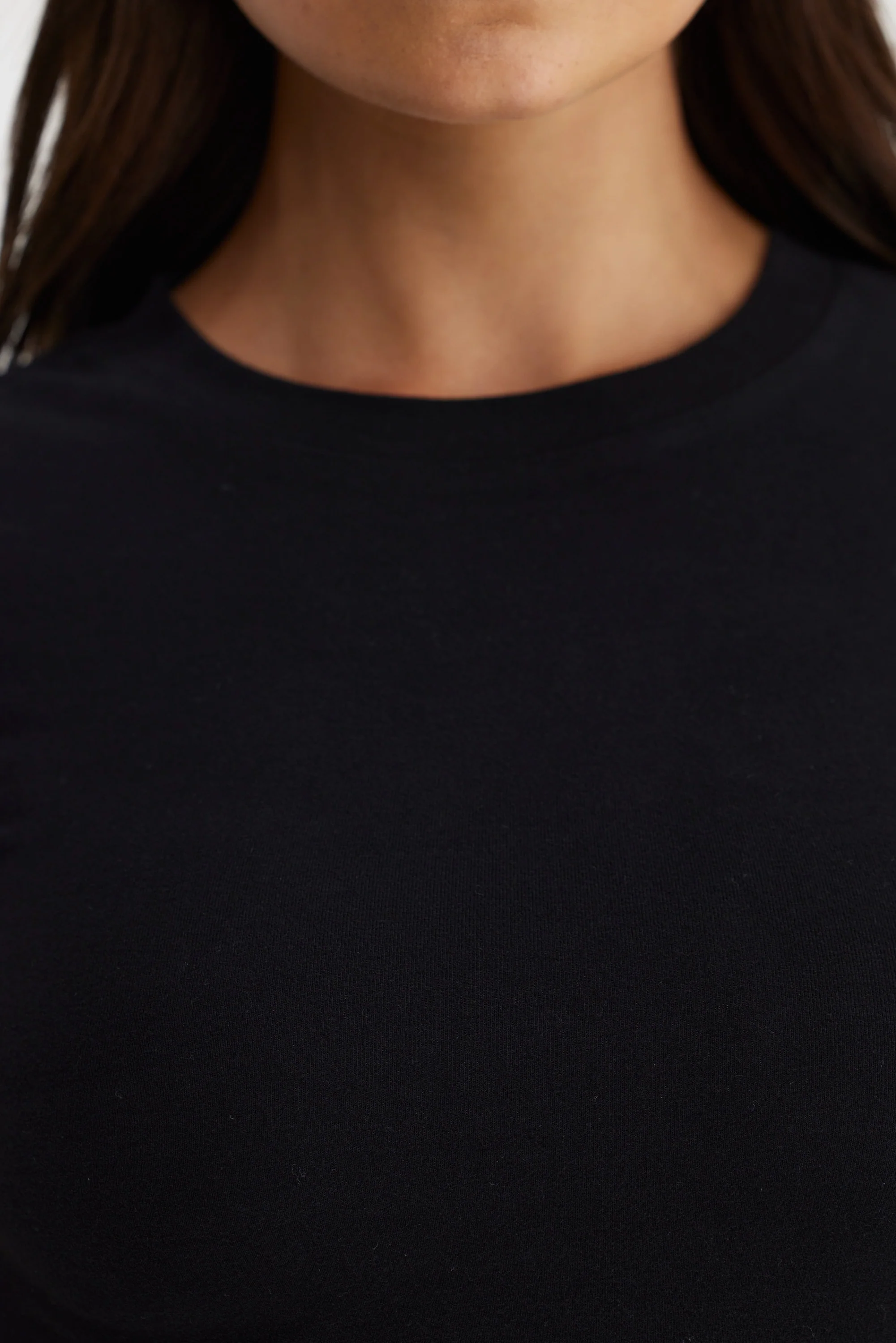 The Evie Fitted T Shirt is the perfect trans-seasonal addition to your wardrobe. Crafted from an ultra-soft brushed cotton blend, it’s lightweight, breathable, and ideal for layering. With a flattering fitted silhouette and cap sleeves, it’s a versatile staple you’ll reach for all year round.