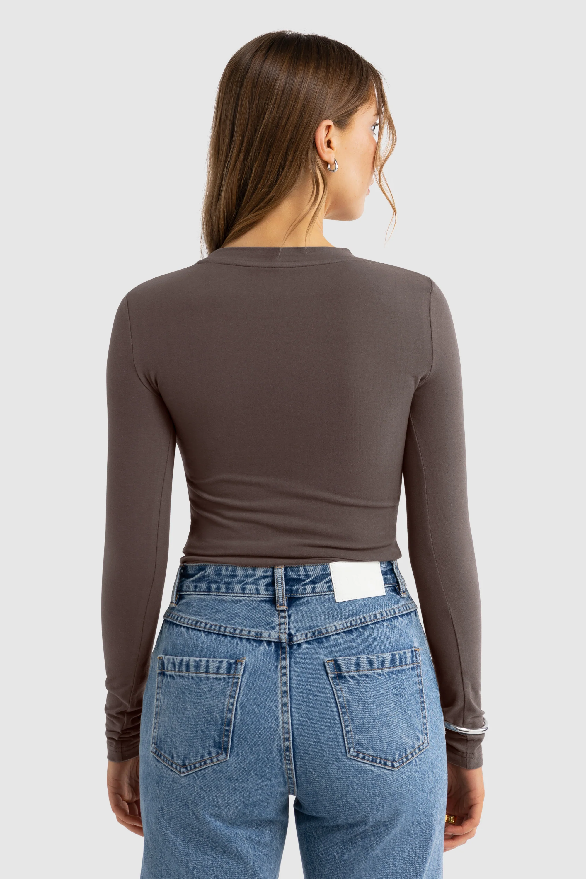 The Evie Long Sleeve Top is a refined everyday staple, crafted from an ultra-soft brushed cotton blend. Designed with a flattering fitted silhouette and long sleeves, itās the perfect layering piece to style with denim, tailoring, or loungewear. A versatile essential for all seasons.