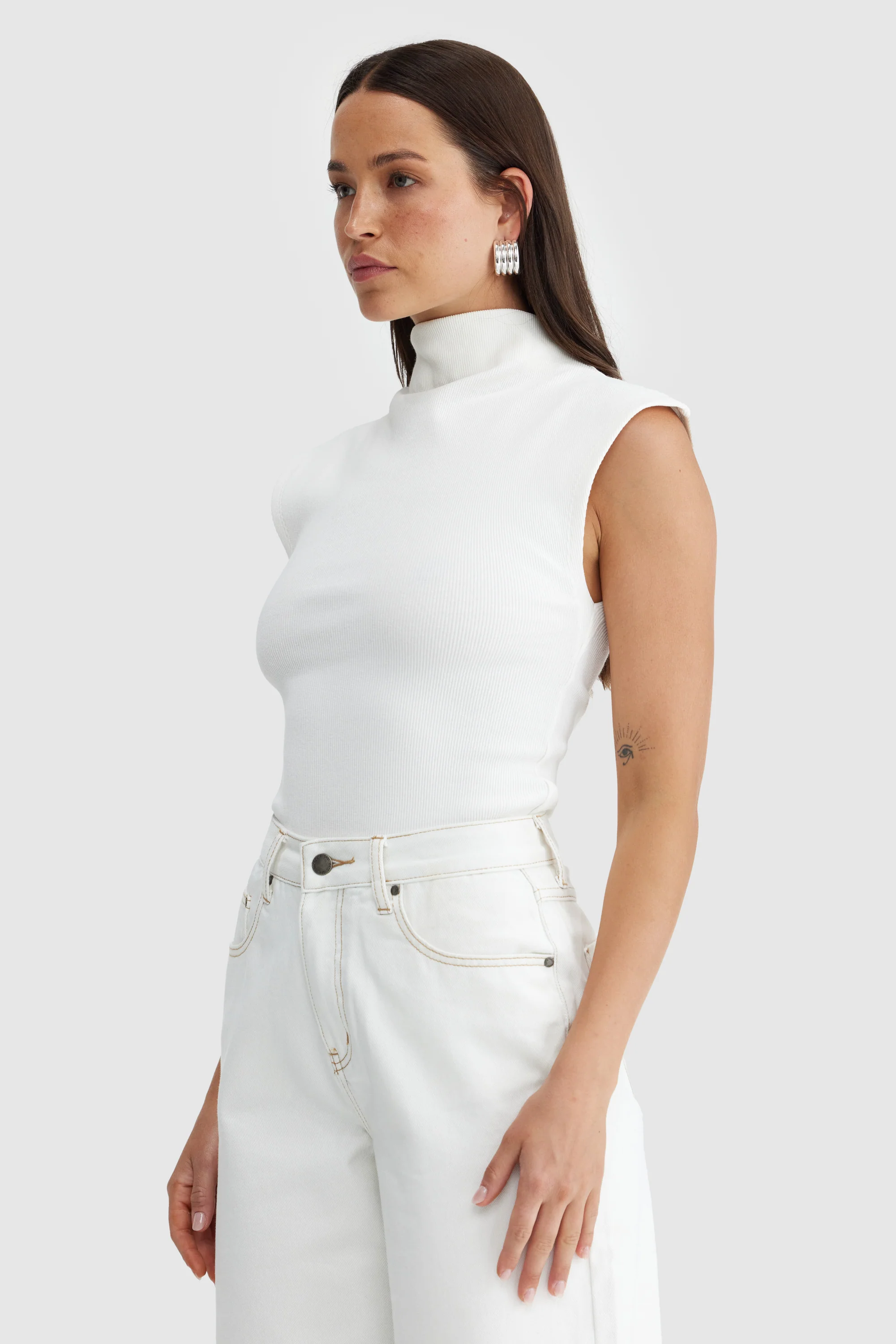 Liv High Neck Rib Top White