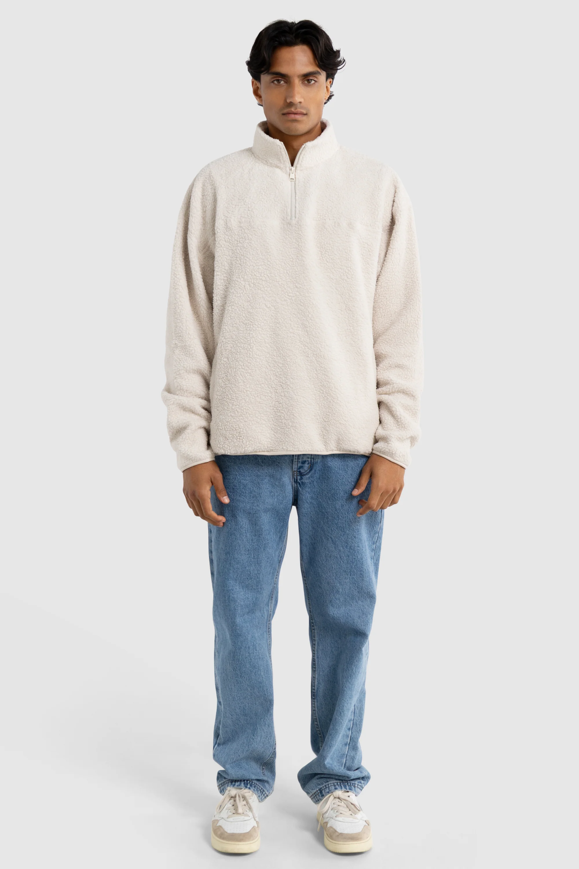 Unisex Sherpa Fleece Quarter Zip Natural